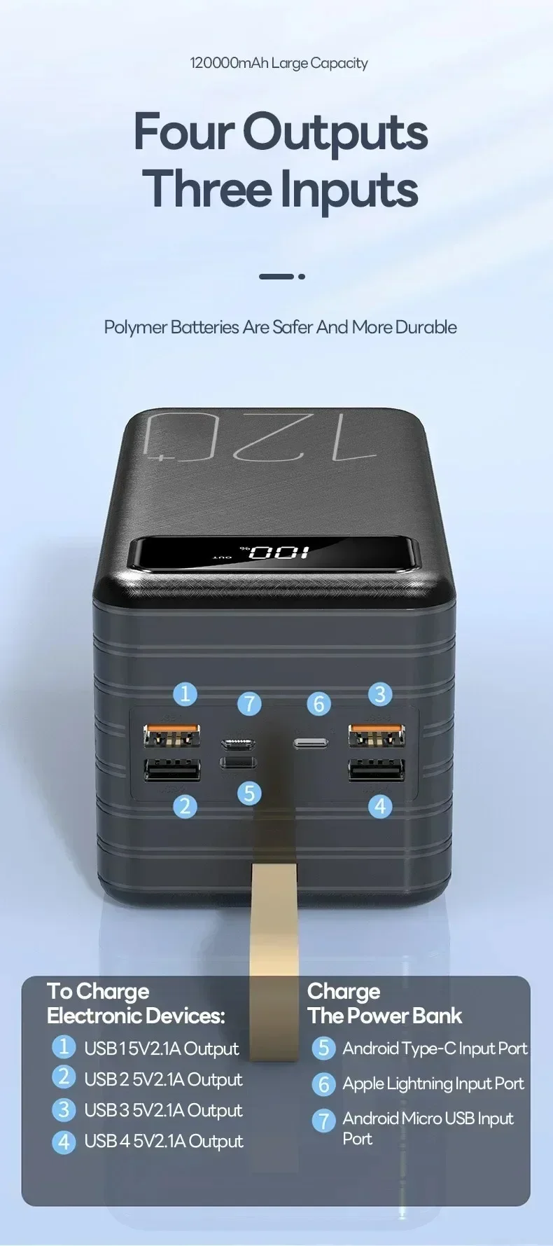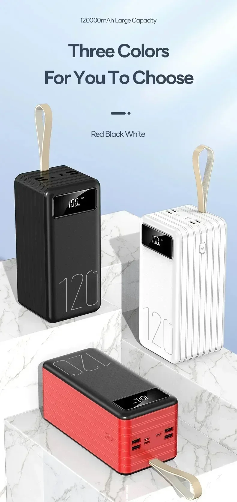 120000mAh Power Bank Fast Charging W/LED Light 120W Portable Super External Battery Laptop for Iphone Huawei