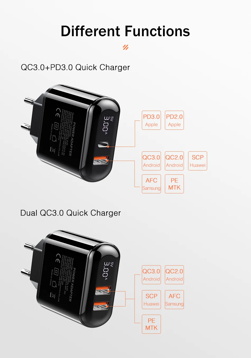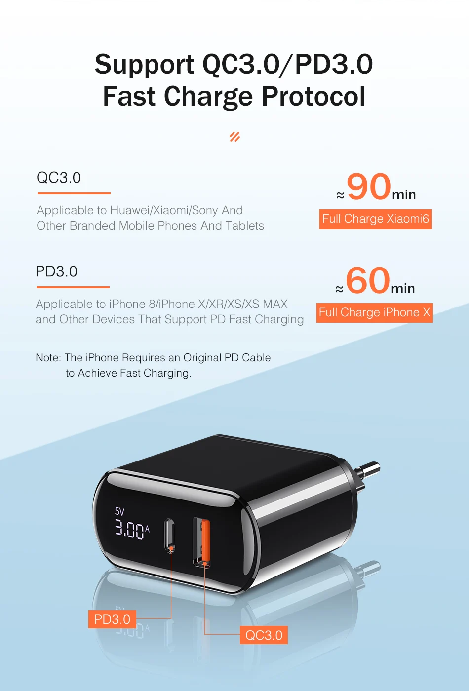 18W USB C Charger PD Type C Fast Charging Power Adapter Quick Charge 3.0 Portable Mobile Phone Charger For iPhone Xiaomi Huawei