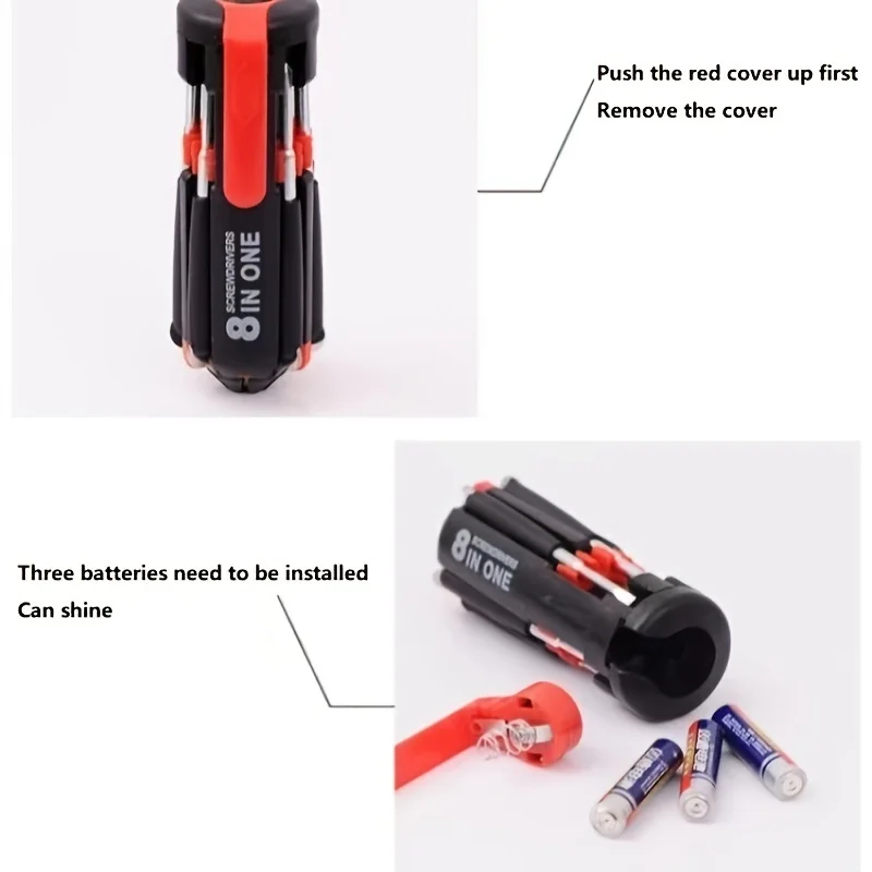 1PC 8 in1 multifunctional screwdriver with light, cross shaped, household industrial multi-purpose screwdriver