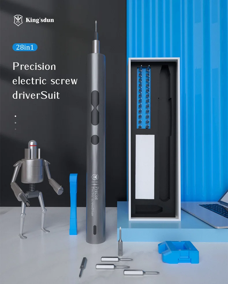 28-in-1 Mini Electric Screwdriver – USB Rechargeable with N20 Motor & Shadowless LED Light