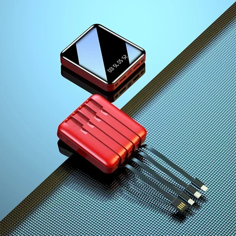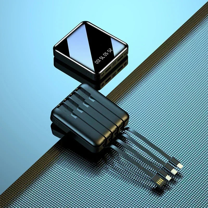 30000mAh Powerbank Mirror Digital Display Screen Built-In Cord Mobile Power Supply Compact External Battery For iphone Samsung