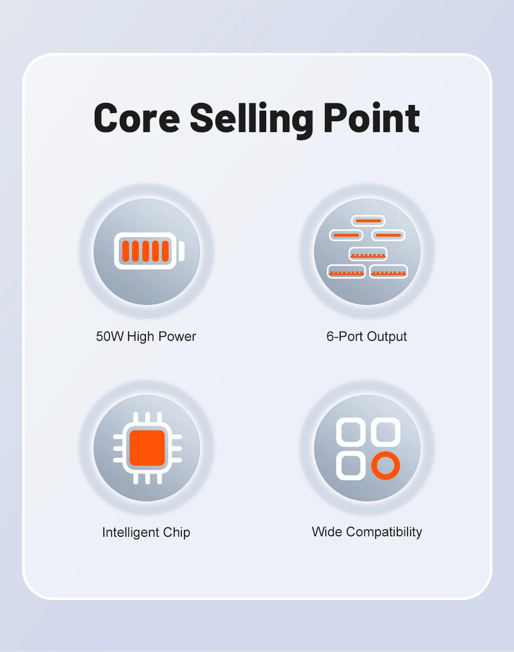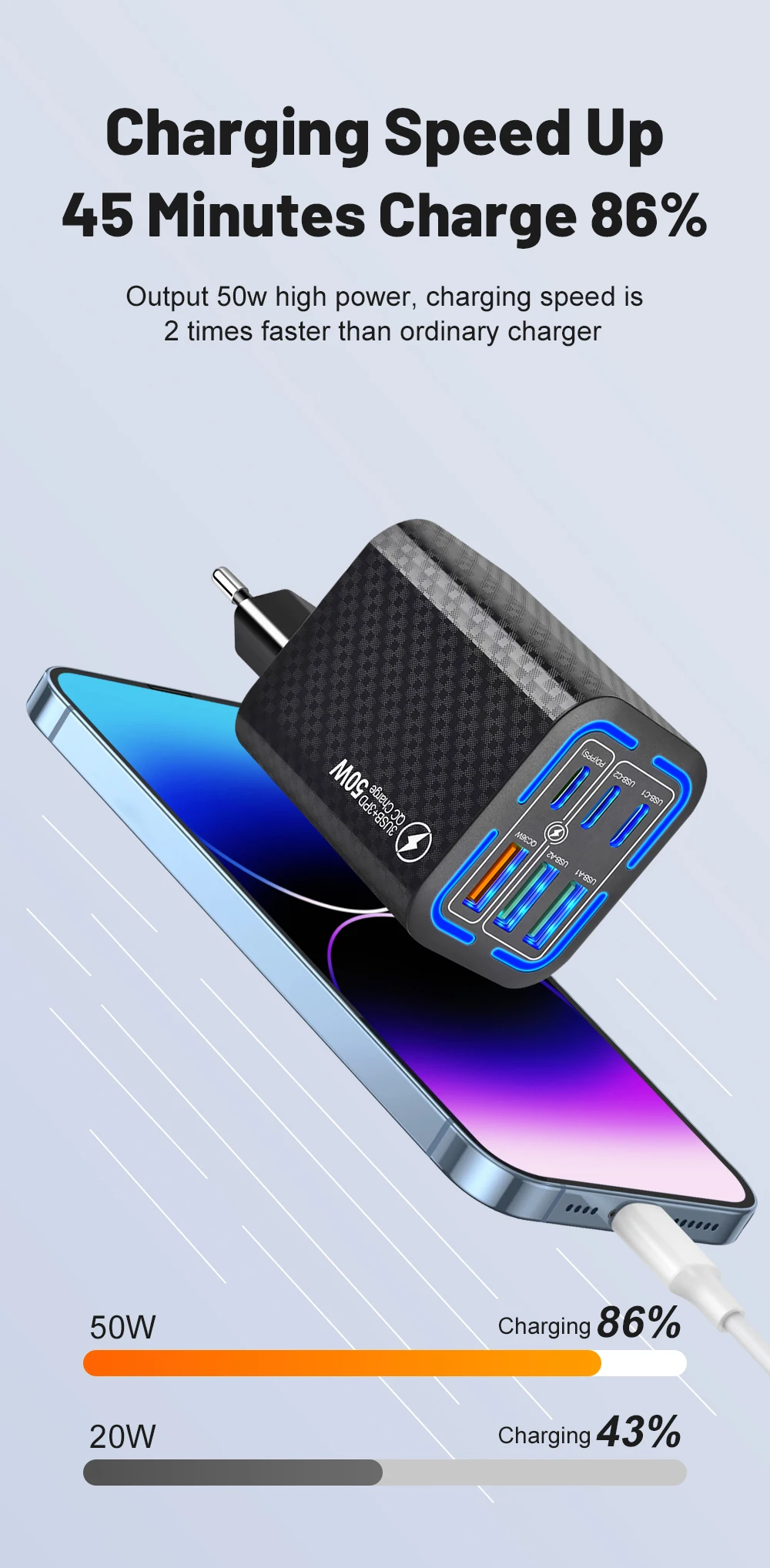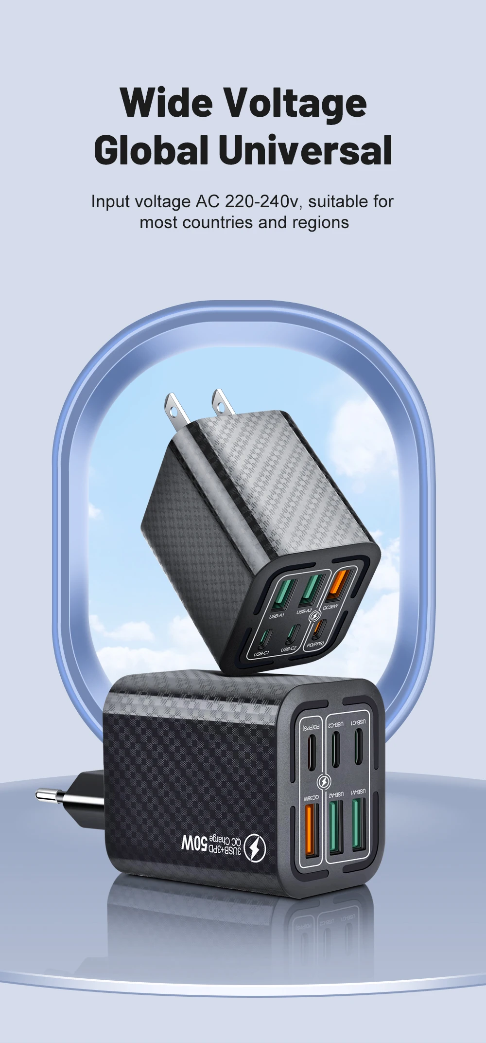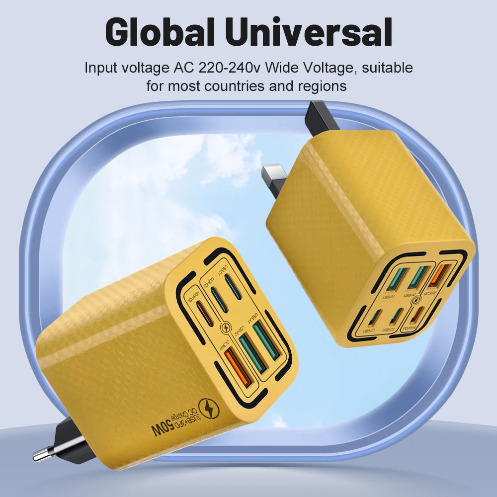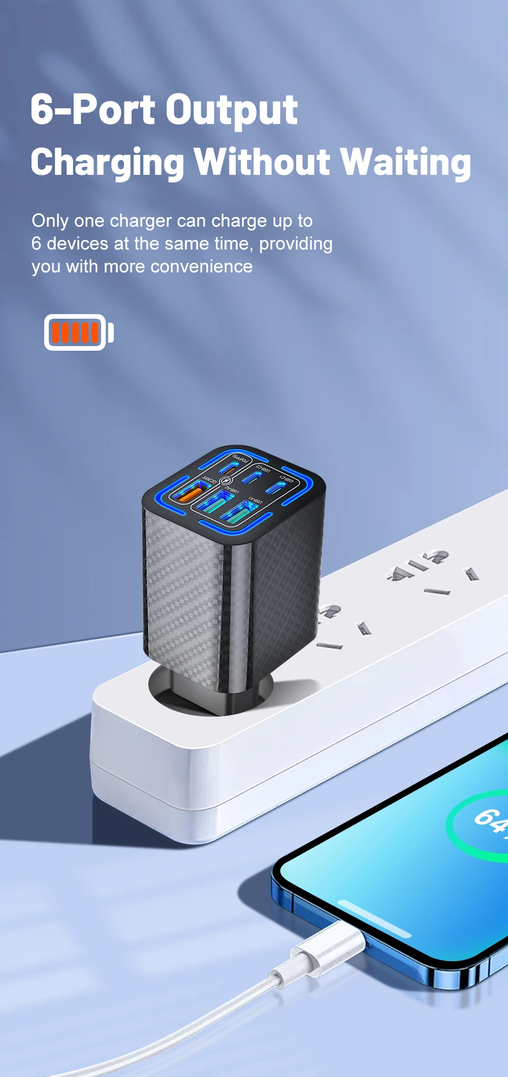 3PD+3USB 100W Wall Charger – QC 3.0 Fast Charging Adapter for iPhone, Samsung, Xiaomi & Huawei