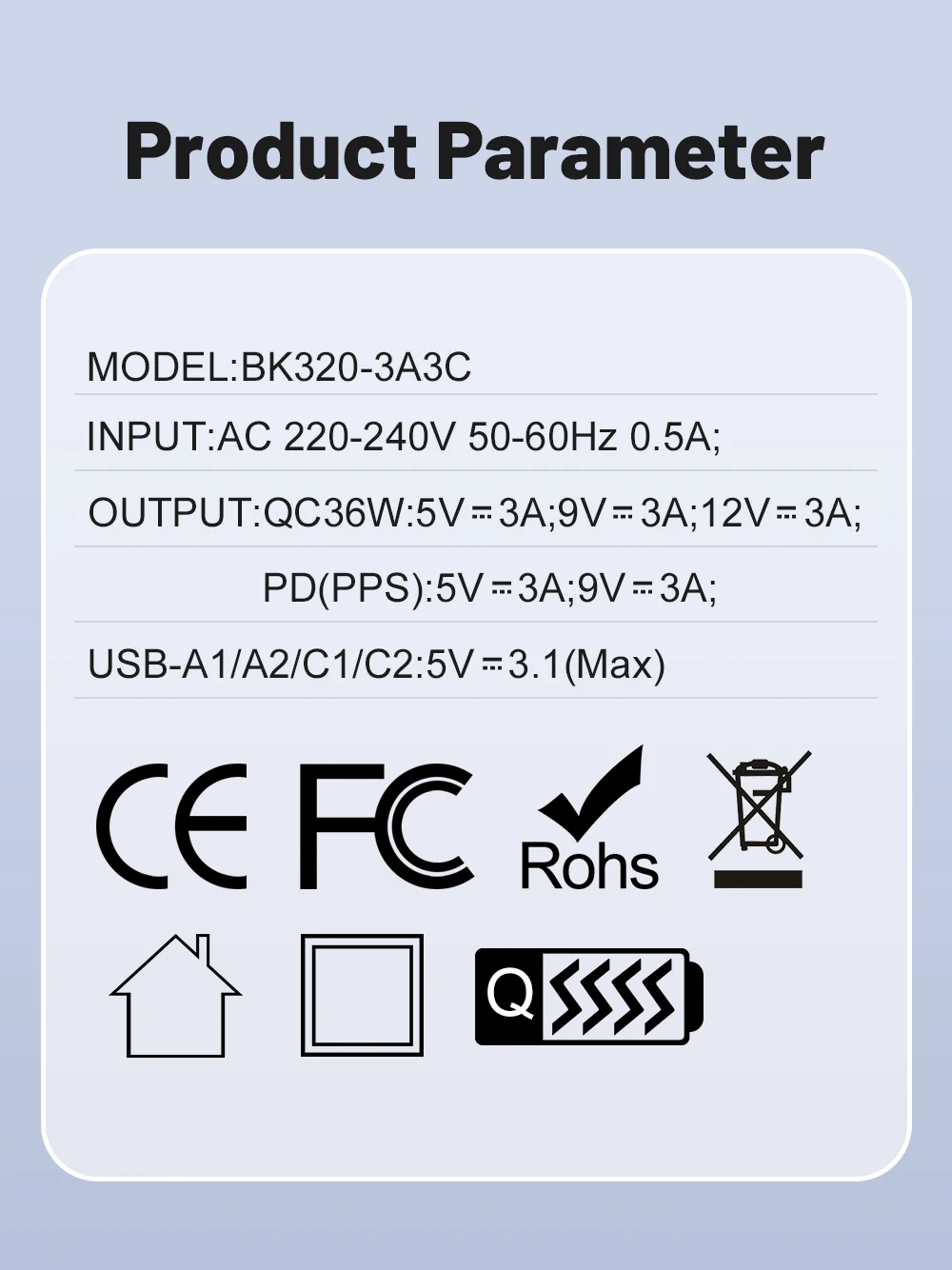 OUTPUT:QC36W:5V-3A;9V-3A;12V-3A;