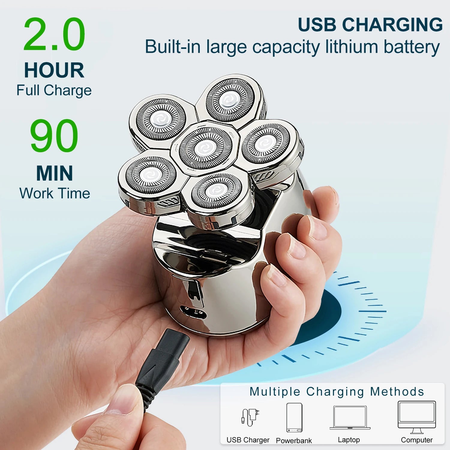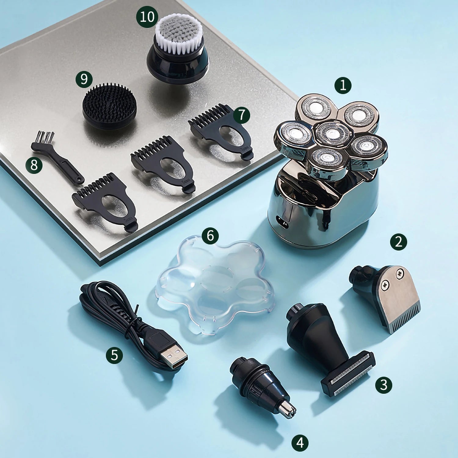 5-in-1 Men’s Electric Head Shaver – Rechargeable Waterproof Razor for Bald Head & Beard