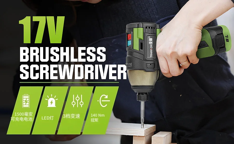 Cordless Brushless Electric Impact Drill 140N.m with Metal Ratchet Chuck
