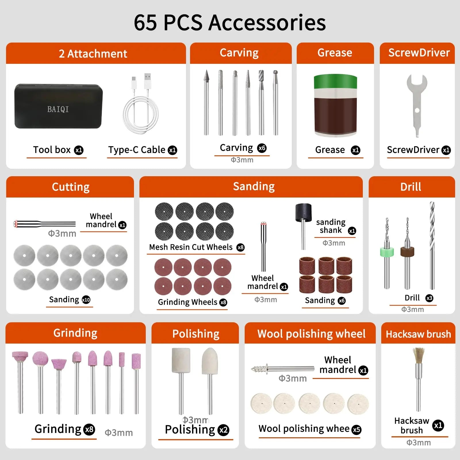 CreationSpace 8.0V Cordless Rotary Tool – 5-Speed 65-Piece Kit for Carving, Engraving & Sanding