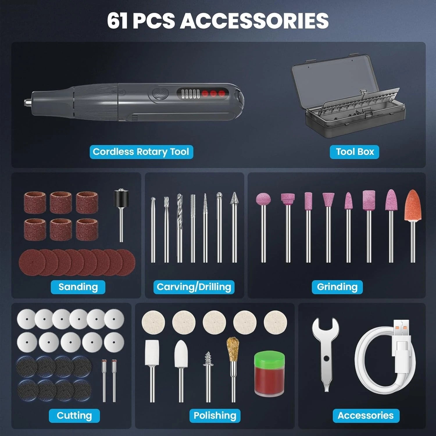 CreationSpace 8V Cordless Rotary Tool Kit – 5-Speed with Digital Display & Auto-Lock Chuck for Drilling & Engraving