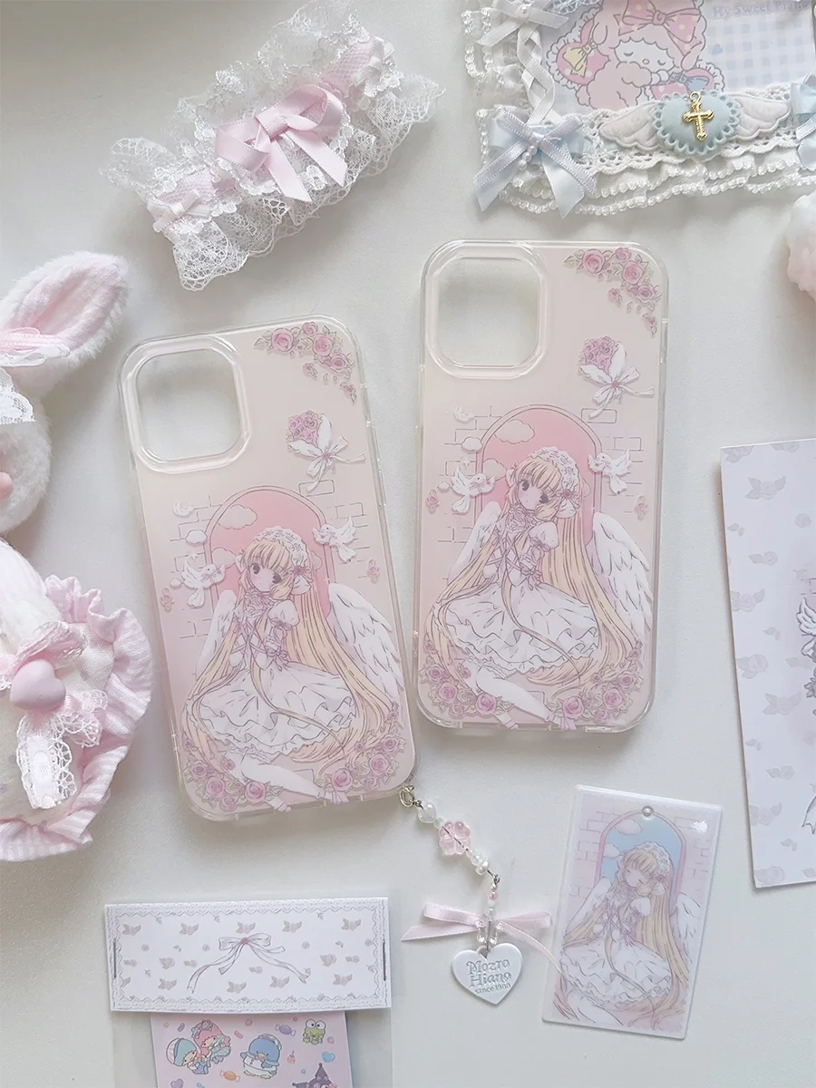 Cute Angel Anime Girl Creative Pink Phone Case For iPhone 16 E 15 14 12 13 11 Pro Max XR XS MAX 7 8 PLUS MINI Y2K Gift