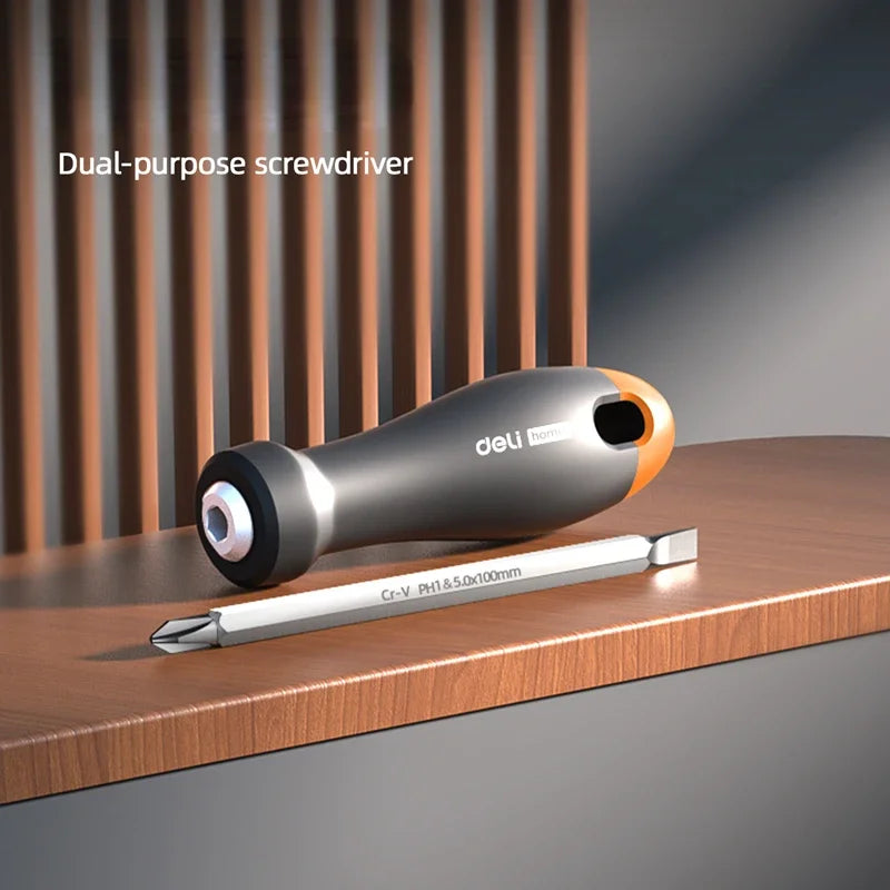 Deli Dual-purpose Screwdriver 1 Pcs Magnetic Slotted Phillips Convertible Batch Head Screw Driver Household Repair Hand Tool