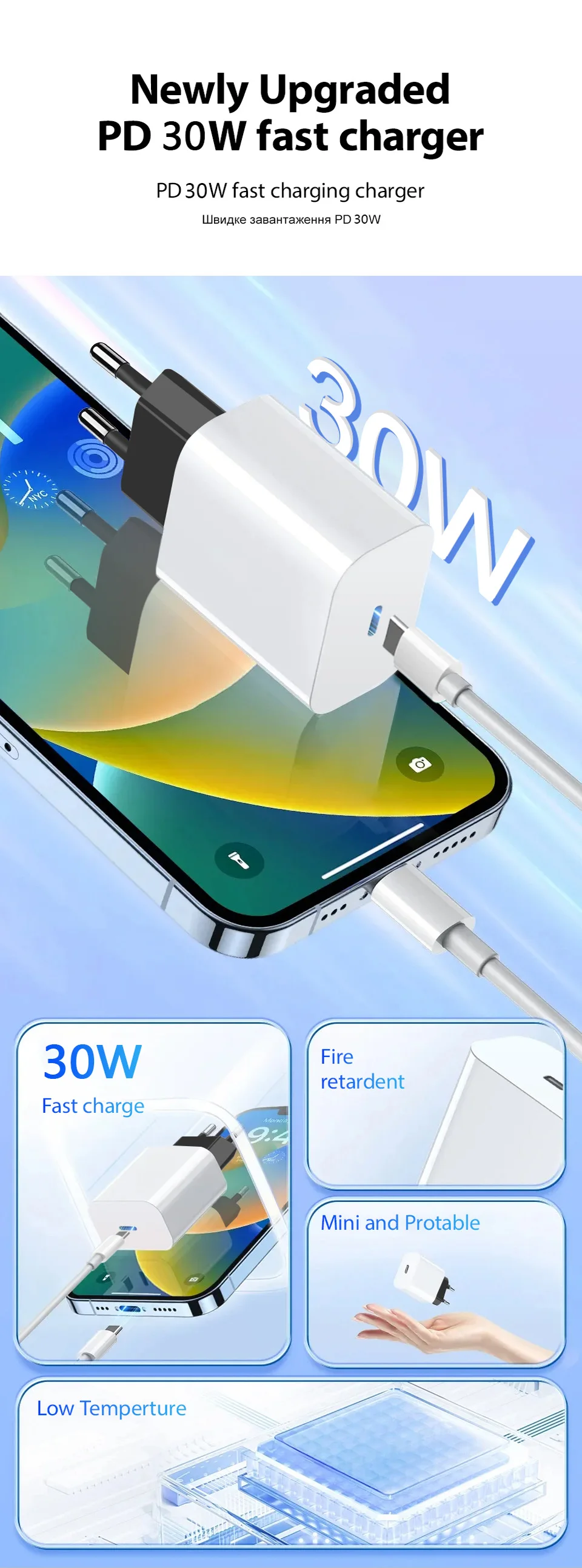 Google Original 30W Charger – USB-C Fast Charging Adapter for Pixel 8/7/6/10/9 Pro/XL/9A