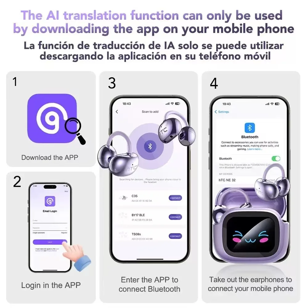 HTC NE32 Bluetooth V6.0 Ear Clip Earphones LCD Touch Screen AI Translator  Noise Reduction Wireless Sports