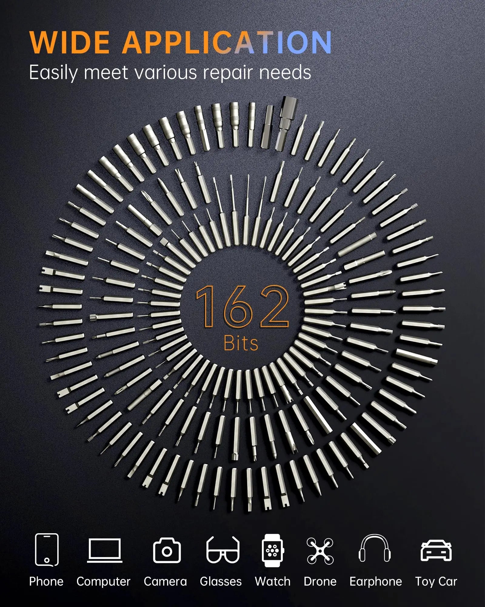 JAKEMY 180-in-1 Electric Screwdriver Kit – Mini Precision Set with 162 Bits & 3 Torque Settings for Phone, Camera & Laptop