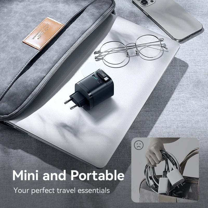 Joyroom 65W GaN USB Fast Charger With Retractable Type-c Cable for Phone Tablet Laptop Fast for iPhone Samsung Macbook