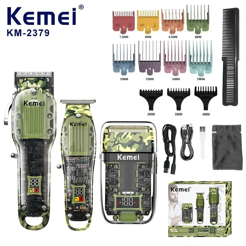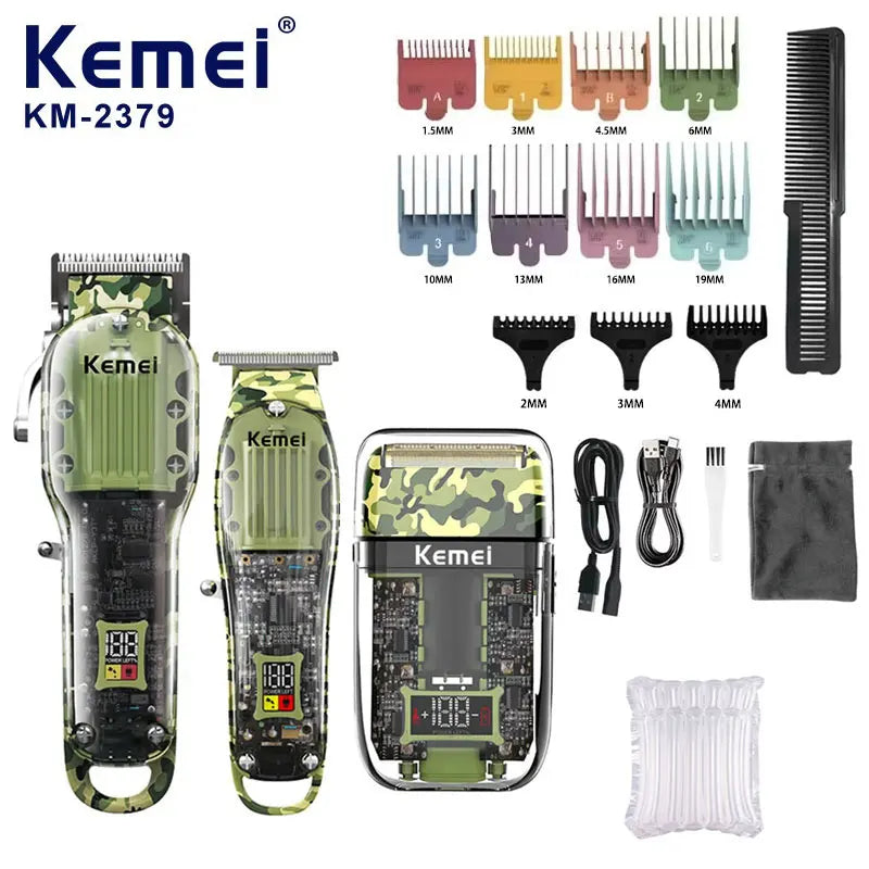 Kemei KM-2379 Transparent Clipper Kit – Rechargeable Trimmer & Waterproof Shaver Set