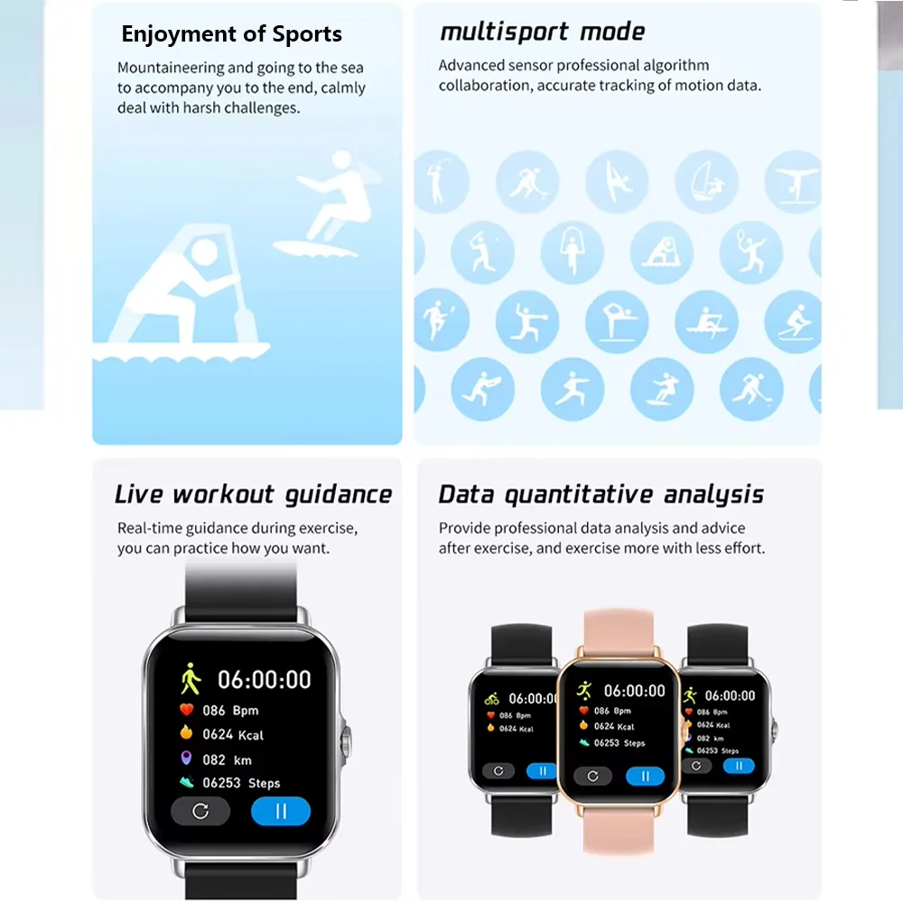• Full Touch Screen :The watch features a full touch screen that allows for easy and intuitive navigation.
