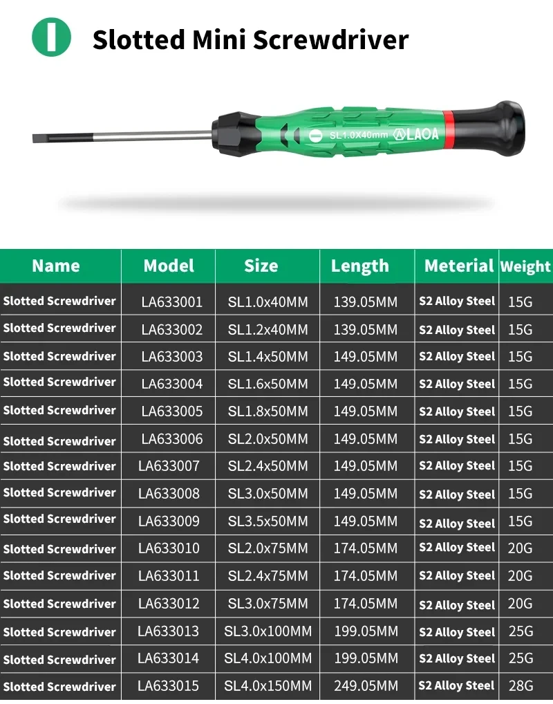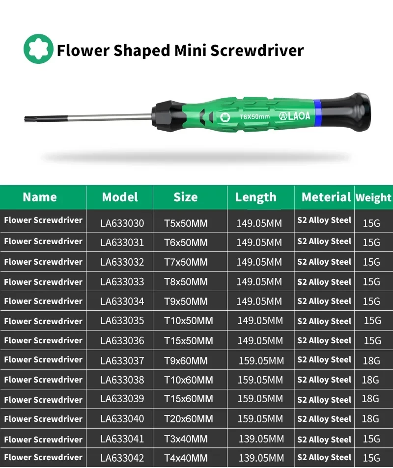 LAOA 1pcs precision screwdriver SL1.0-4.0  phillips mini  phillips plum blossom T5-T20