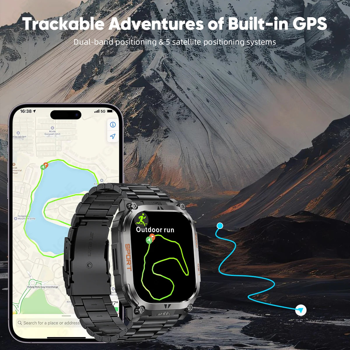 LIGE New GPS Tracking Smart Watch LED Flashlight 1.96inch HD Screen Compass BT Call Waterproof Sport For Android iOS