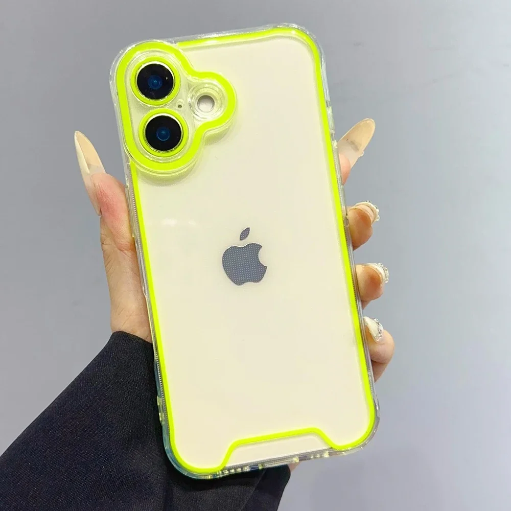 Luminous Neon Fluorescent Clear Phone For iPhone 16 Pro Max 15 14 13 12 11 Plus Camera Protection Soft Shockproof Cover
