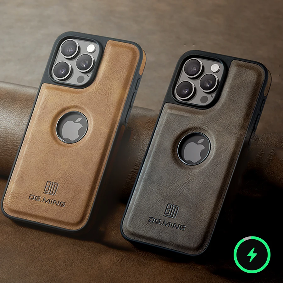 Luxury Strong Magnetic Leather Case for iPhone 16 Pro Max 17 Air 15 14 Plus 13 12 11 Logo View Wireless Macsafe Magsafe