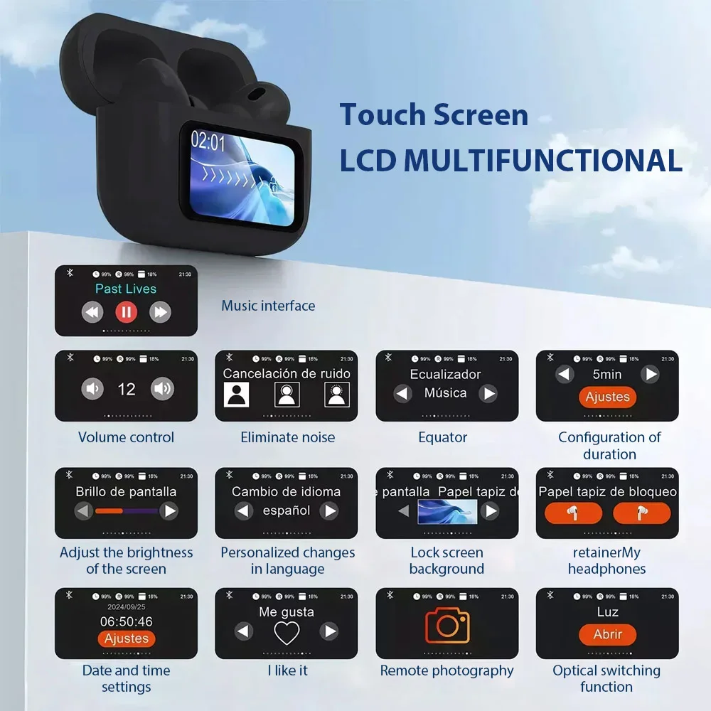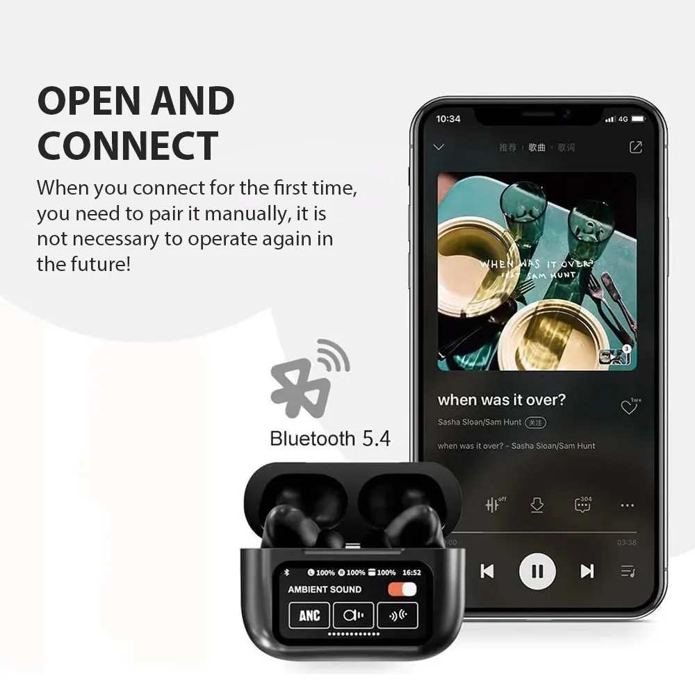 New Wireless Bluetooth Earphones A9pro In-Ear Noise-Cancelling Headphones with Smart Screen Ultra-Long Battery Life Sport Earbud