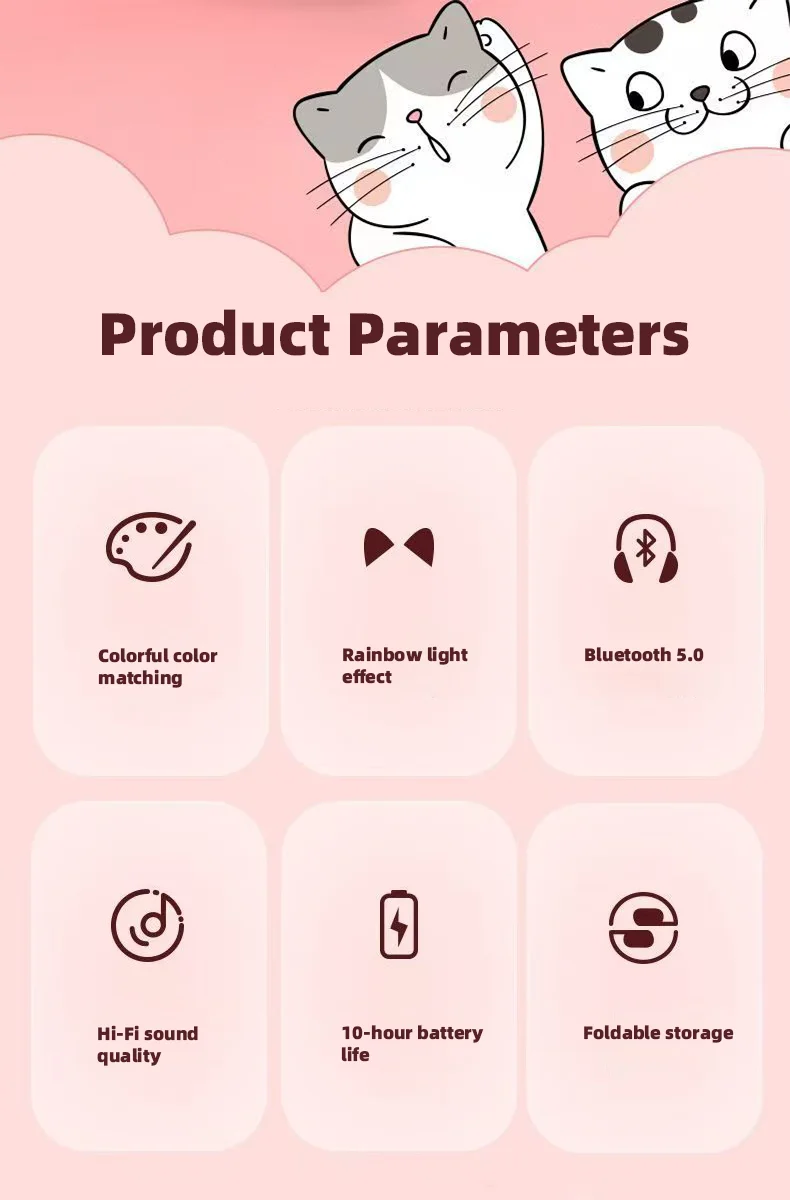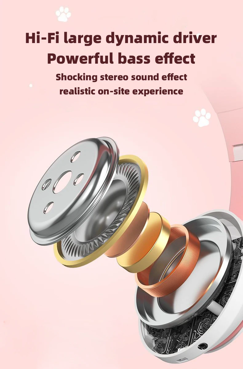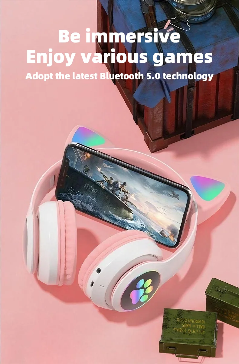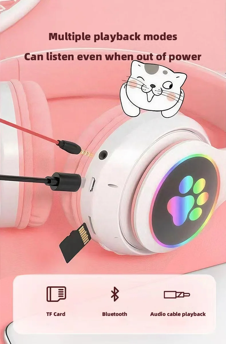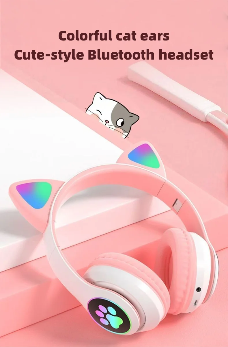 P47M Wireless Headphone Flash Light Cute Cat Bluetooth with Mic Control LED Stereo Music Helmet Phone Bluetooth