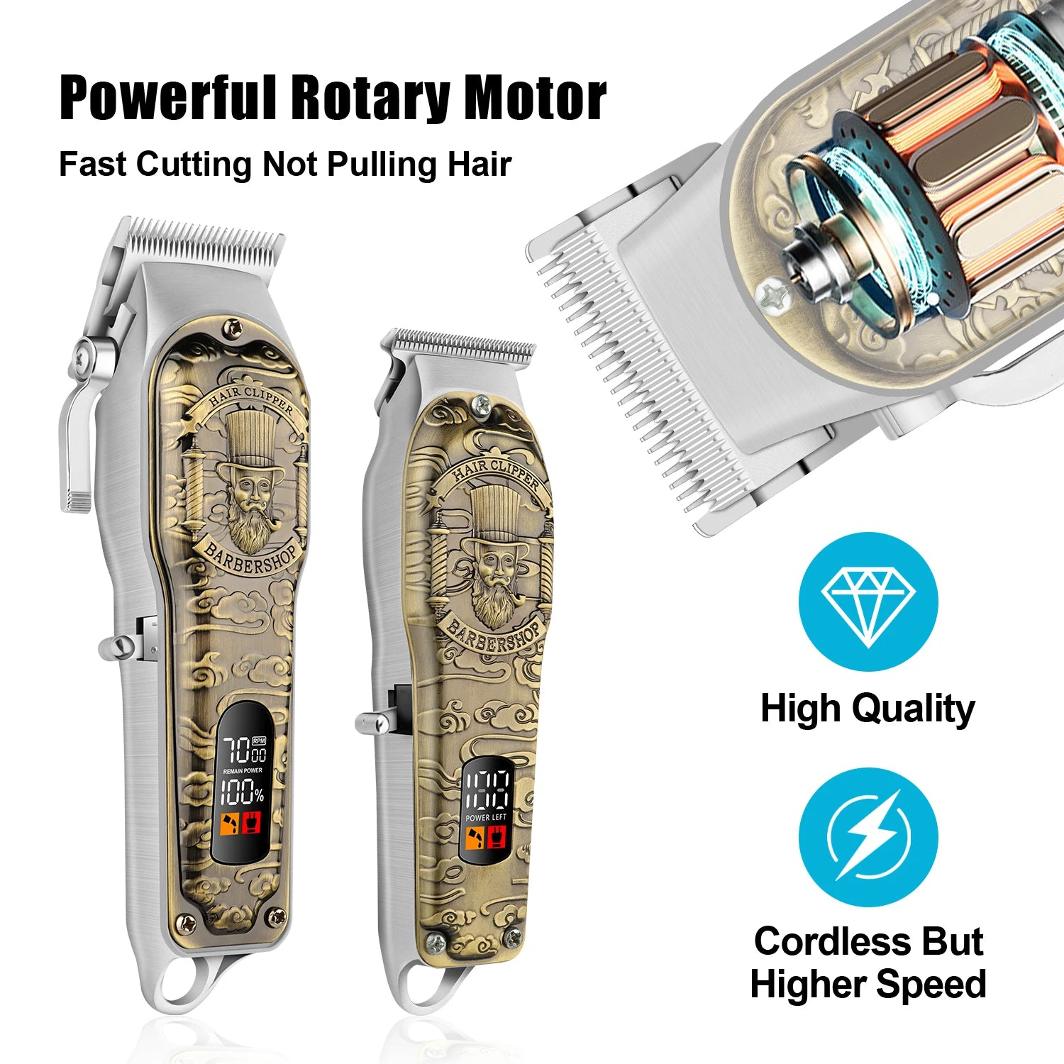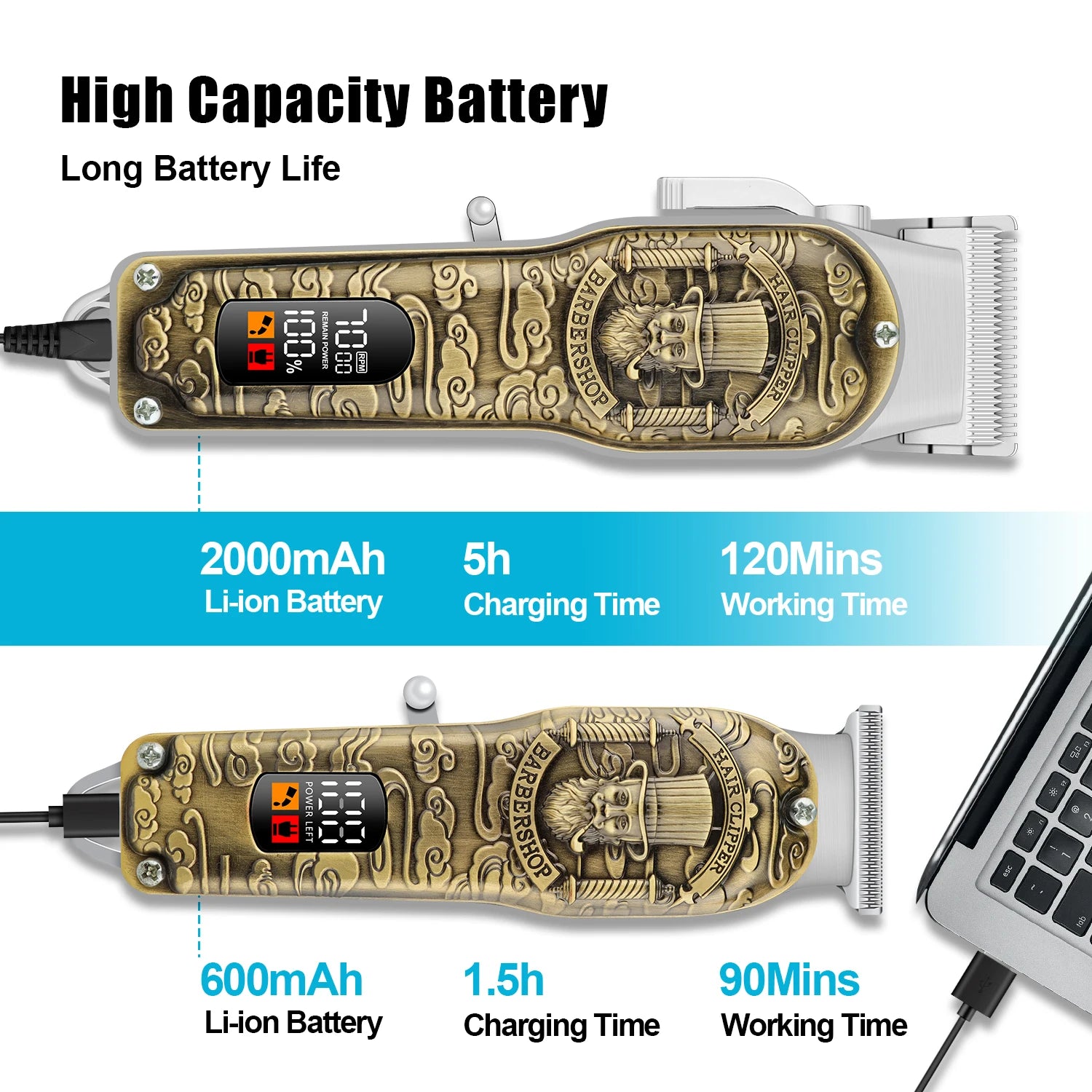 Professional T-Blade Hair Clipper Set – Cordless, LED Display, Barber Kit for Men