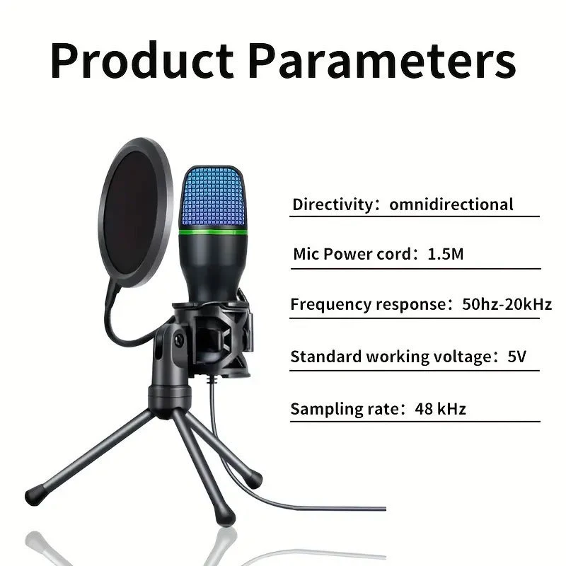 RGB USB Condenser Microphone – Pro Mic for Gaming, Streaming & Podcasting