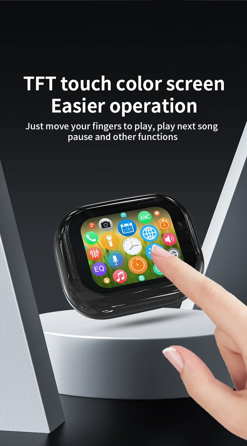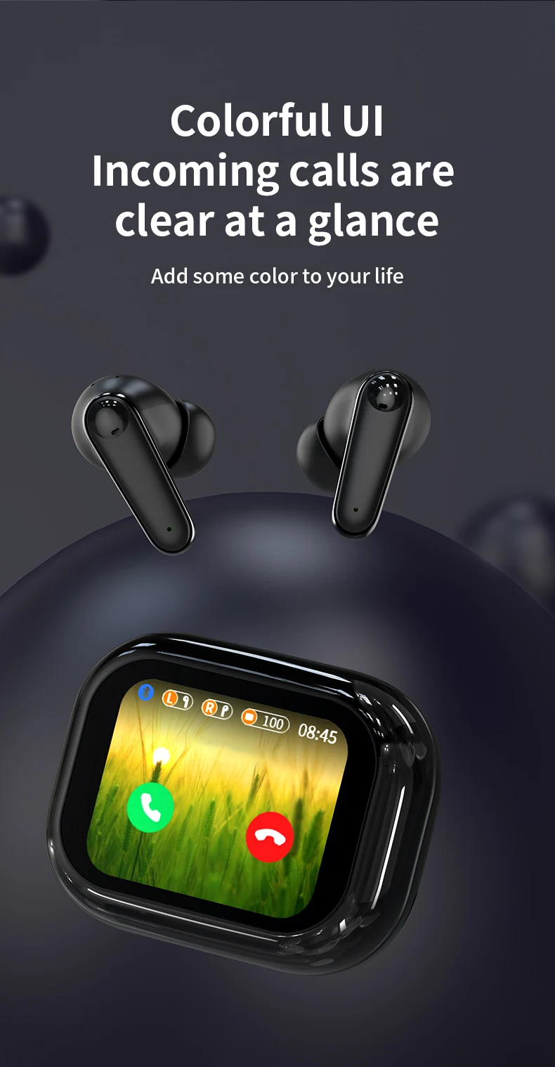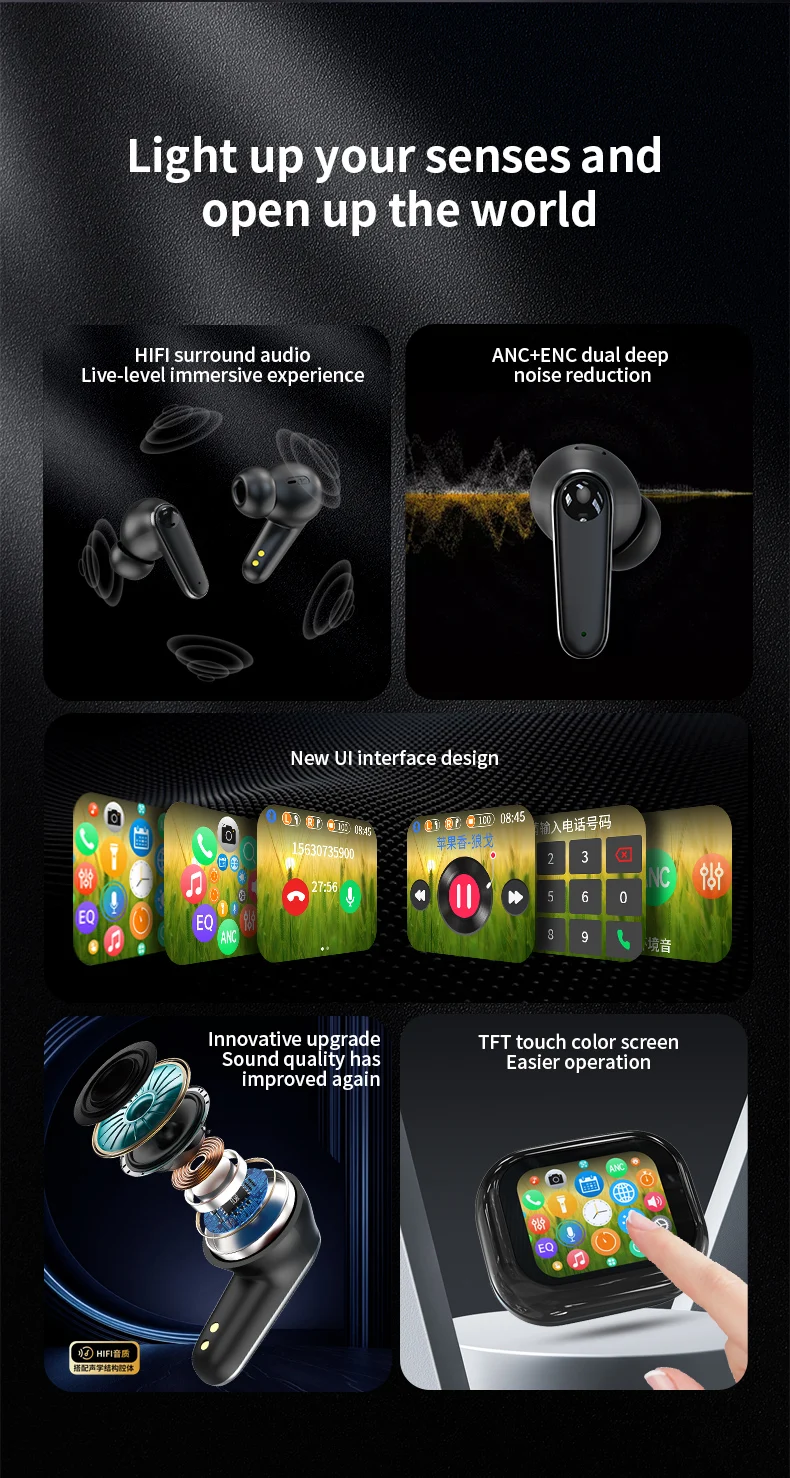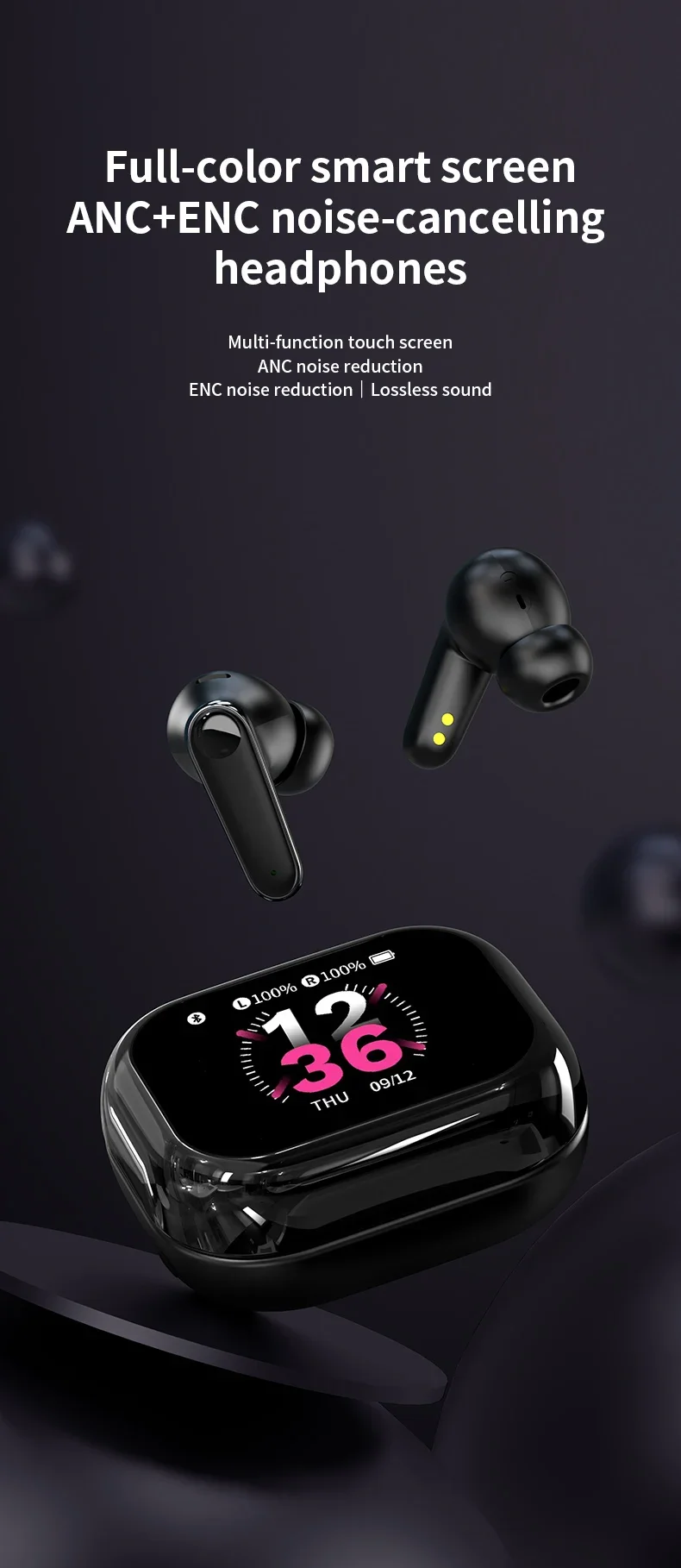 • Full Color Smart Screen ANC+ENC Noise Cancelling Earbuds x 1 pair