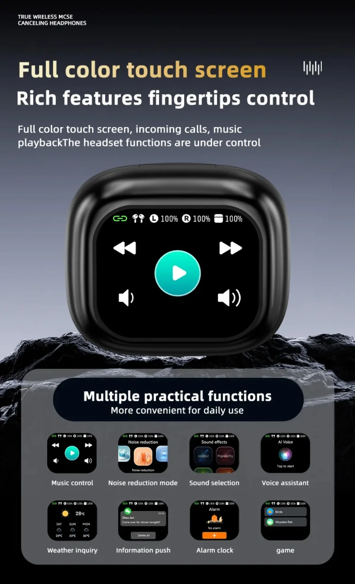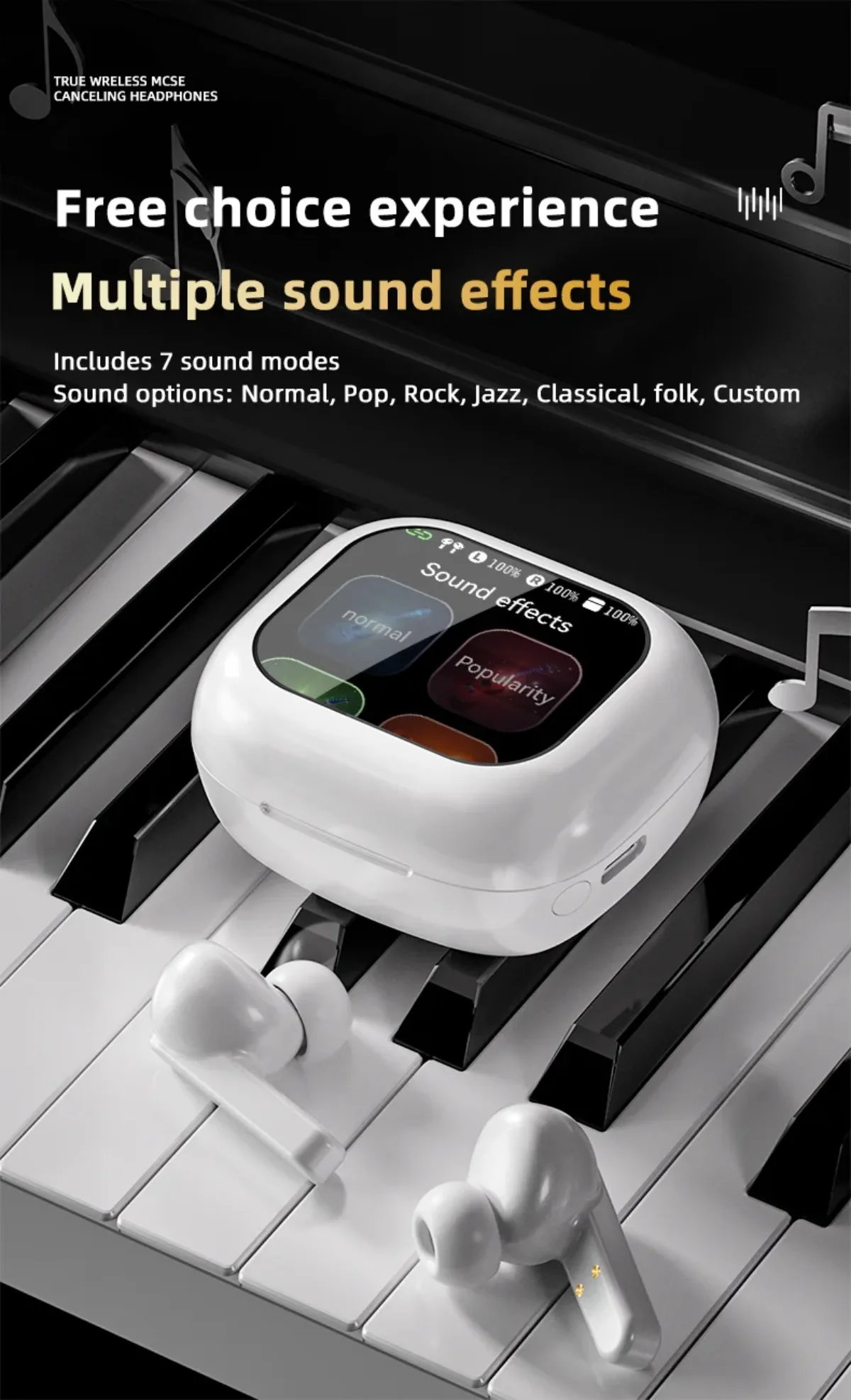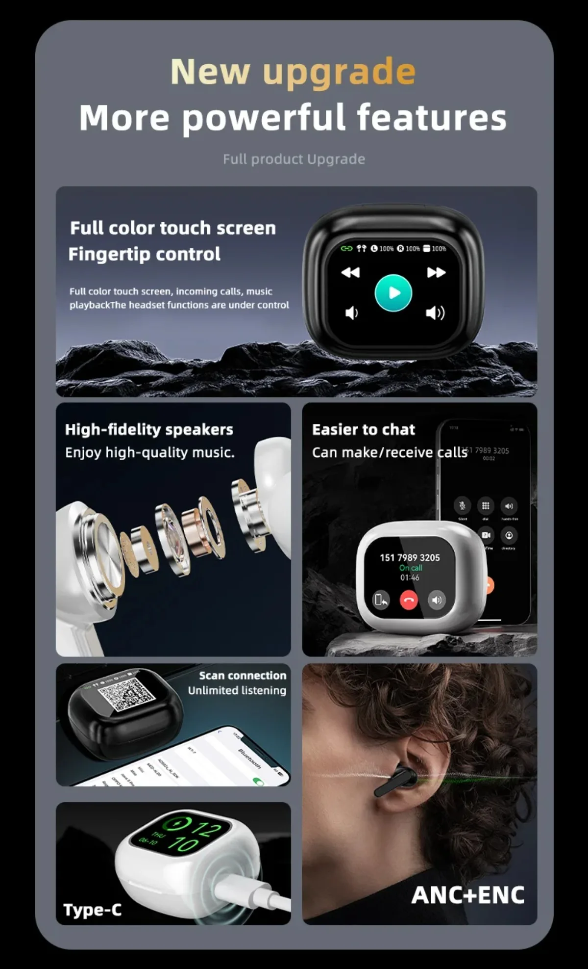 Translation Headphones with Screen Touch in Ear True Wireless Bluetooth 5.4 Music Haedset HiFi Audio ANC ENC Noise Cancelling