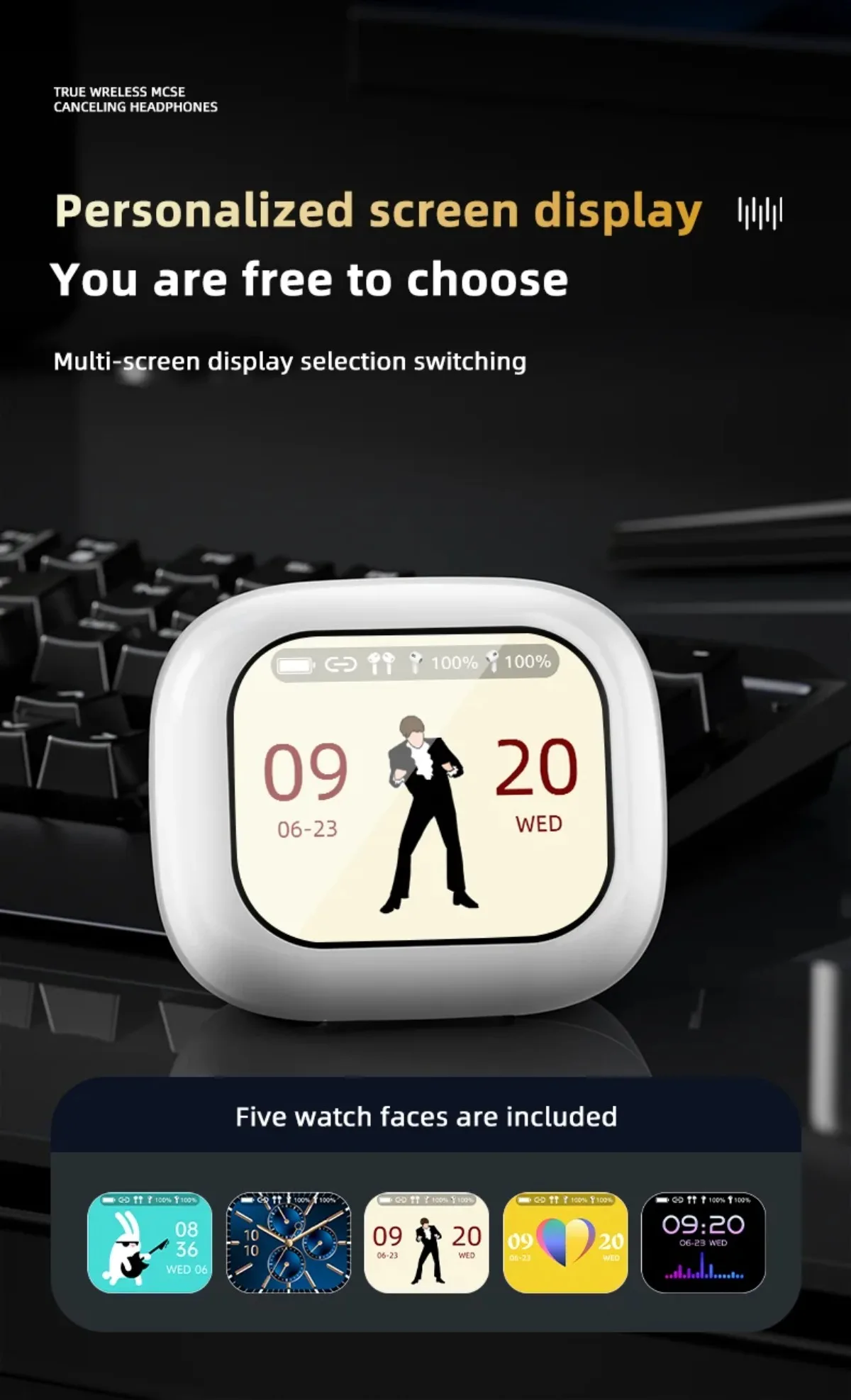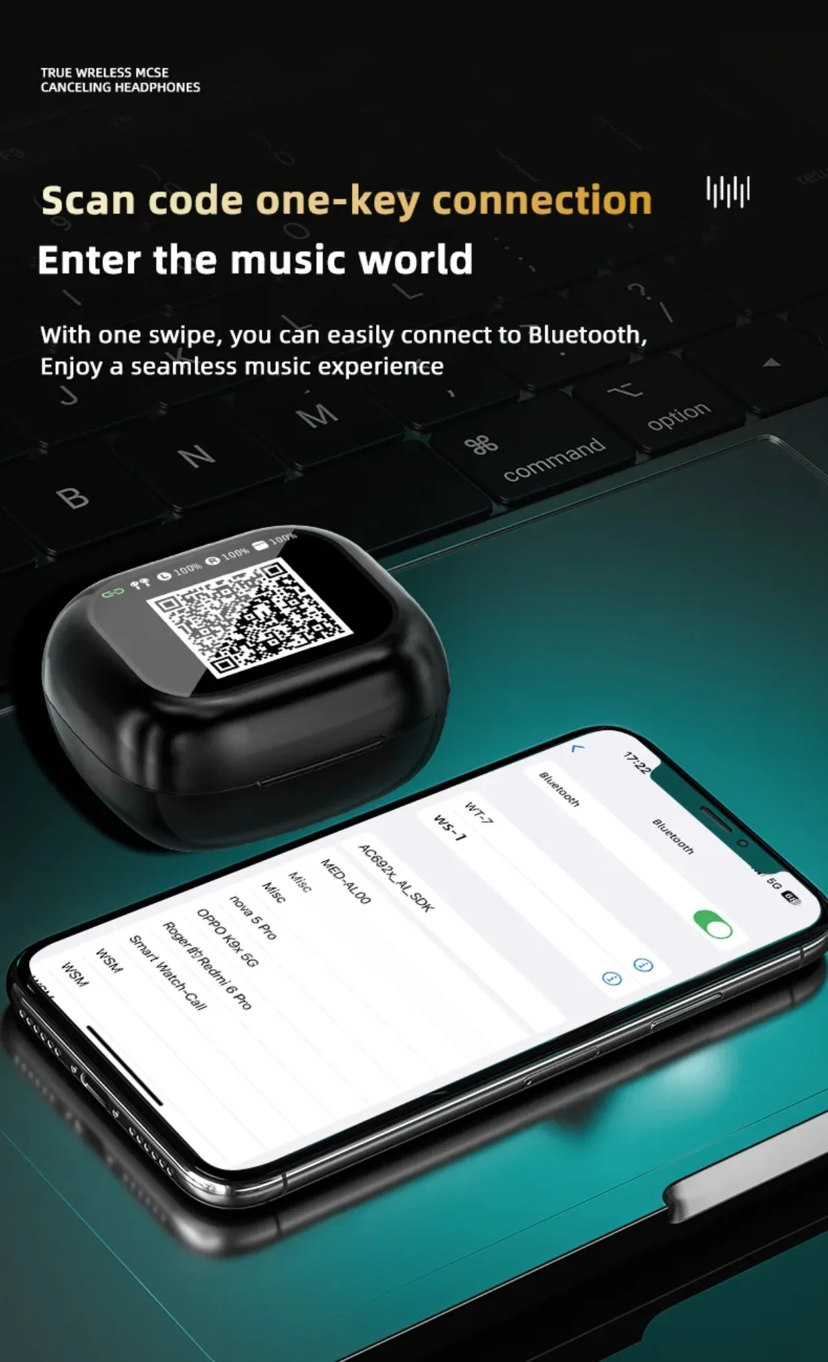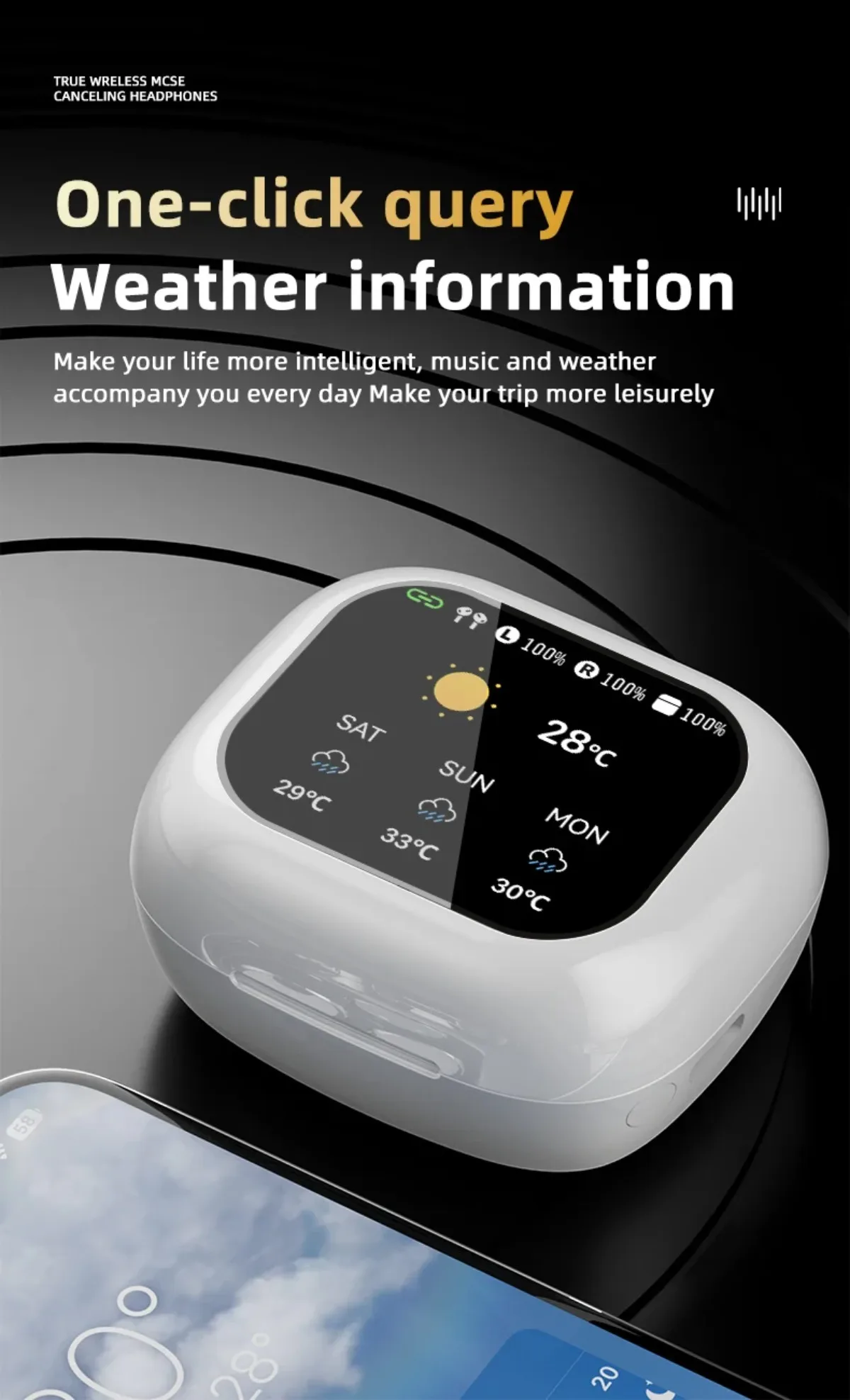 Translation Headphones with Screen Touch in Ear True Wireless Bluetooth 5.4 Music Haedset HiFi Audio ANC ENC Noise Cancelling