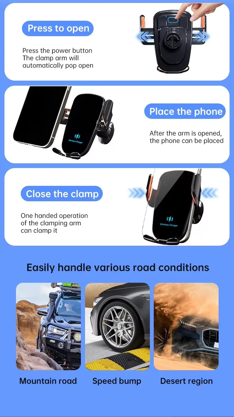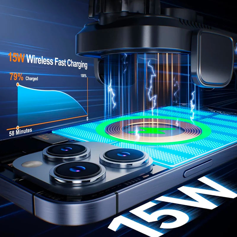 UYUXIO Manual Clamp Wireless Car Fast Charger 15 Air Vent Car Mount Phone Holder for iPhone Samsung Android Phone