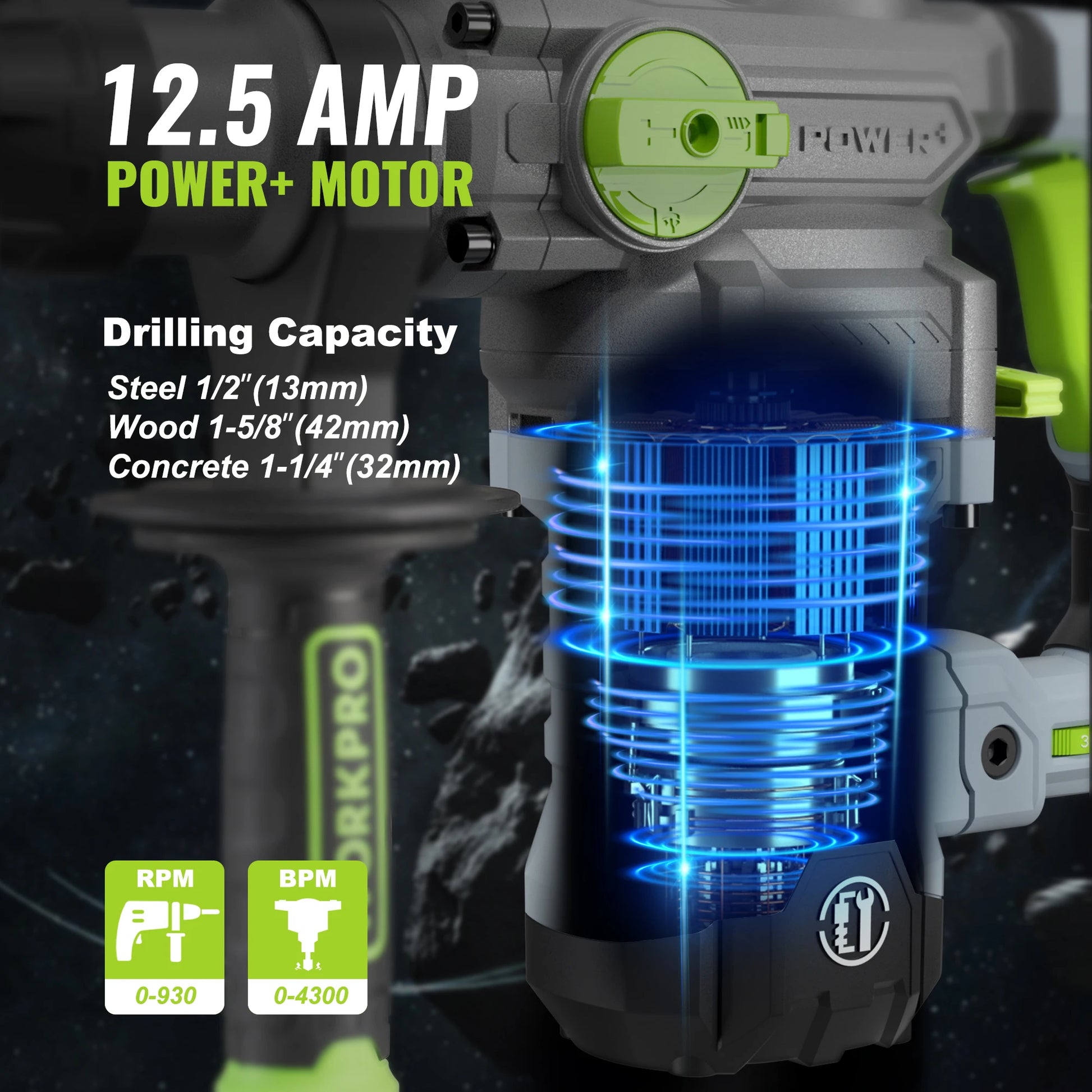 WORKPRO 12.5AMP Heavy Duty Rotary Hammer Drill – Concrete & Wood